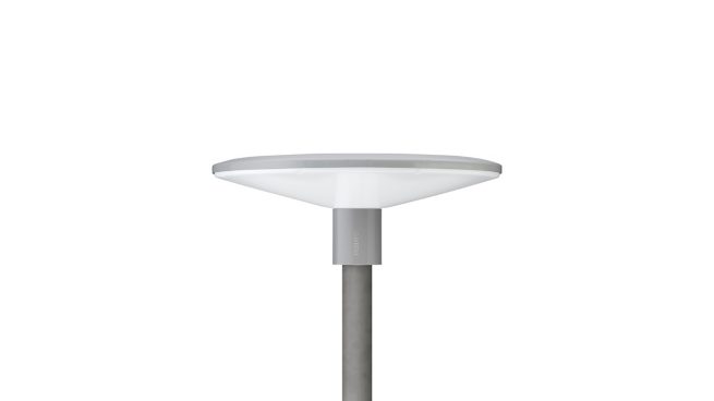 Urban road & street light, Aluminio, Plateado, Punta del poste para un diámetro de 62 mm, Fuente de alimentación con DynaDimer y flujo luminoso constante (integrada), Flujo luminoso constante con atenuación LumiStep de 6 horas, 1862 lm, 32.5 W, 61 lm/W, 3000 K, (0.43, 0.40) SDCM <5, CRI80, Distribución simétrica, IP66 | Protección contra el ingreso de polvo, a prueba de chorro de agua, IK10 | 20 J resistente a vandalismo, Clase de seguridad II, Nivel de protección contra sobretensión hasta 6 kV en modo diferencial y 6 kV en modo normal, Bloque de conexión con tornillos de 5 polos